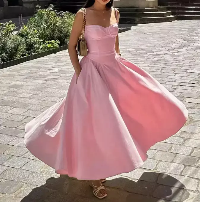 Vestido feminino 2025 primavera verão mais recente cor sólida francês elegante estilo retro dopamina vestido maxi vestido saia longa